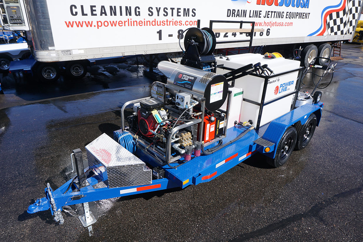 Power wash trailers for sale by Power Line Industries have set the standard in pressure wash trailers for over 30 Years. We ship power wash trailers to California, Texas, Florida and worldwide. Power Line can custom build your mobile power wash rig.