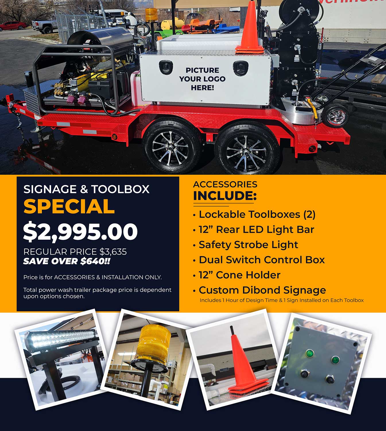 *Pricing is subject to change without notice. Some equipment pictured include add-ons that cost extra. For exact pricing & delivery on our power wash trailer equipment, please CALL US TOLL-FREE at 1-800-624-8186.
