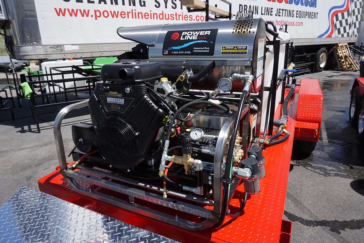 Power wash trailers for sale by Power Line Industries have set the standard in pressure wash trailers for over 30 Years. We ship power wash trailers to California, Texas, Florida and worldwide. Power Line can custom build your mobile power wash rig.
